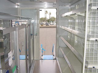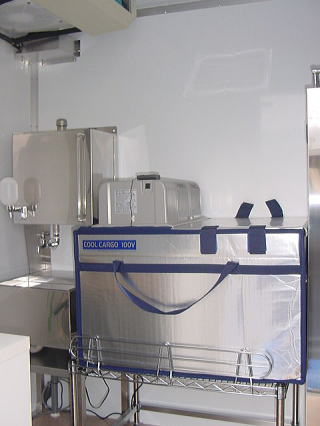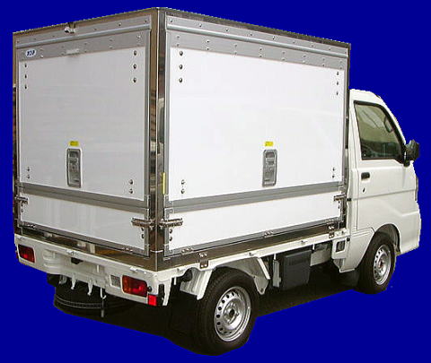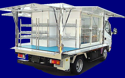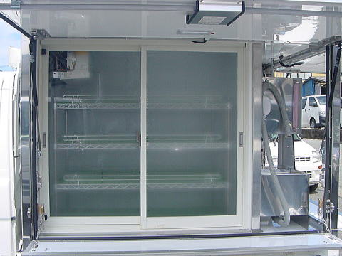 荷台のスペースを活用し、冷蔵ショーケースや常温品用棚等