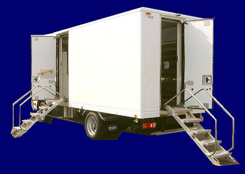 お客様に折りたたみ式階段を上って室内に入って頂き