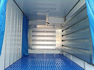 広い荷台のスペースを、冷蔵ショーケースや常温品用棚等