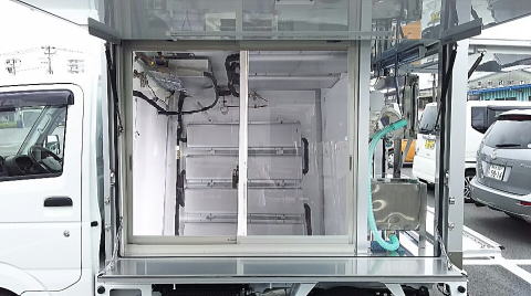 車輌及び移動販売コンテナ共に温室効果ガスが排出されない移動販売車は、
