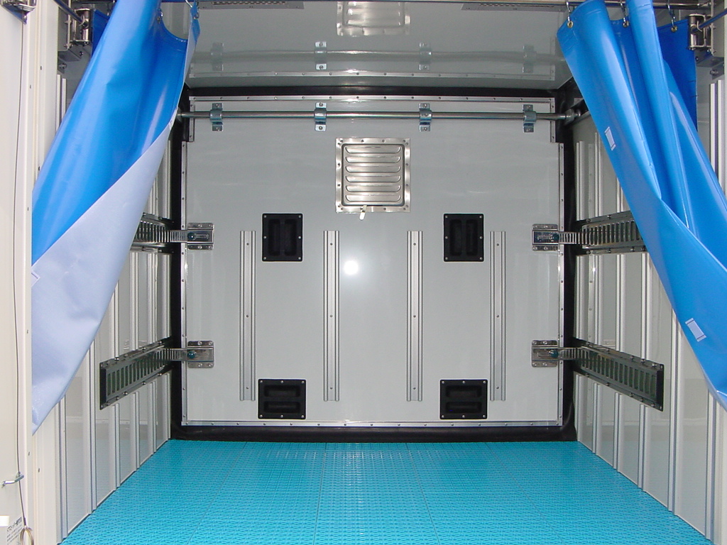 《仕様例》 内外板FRP製断熱ウレタン75mm 扉、 左サイド3点スライド扉 リア観音扉 床面、 FRP張り(樹脂製スノコ敷き) 冷凍機、エンジン直結式低温冷凍機 (菱重製TDJ251D) 装備、 移動ハネ上げ式間仕切り (天井送風ダクト方式)